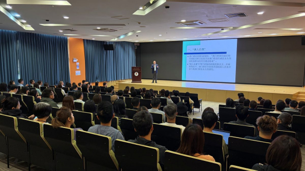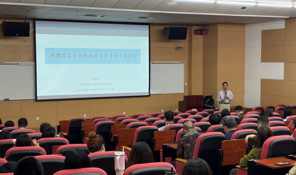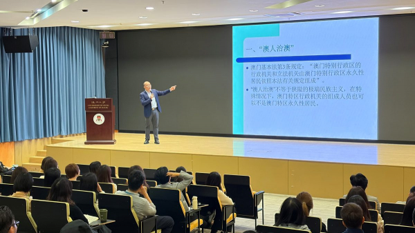 法學院助理教授江華闡述了「澳人治澳」與「愛國者治澳」的內涵、「愛國者治澳」原則的正當性,以及此原則在澳門基本法中的體現。約130名員工參與此培訓。